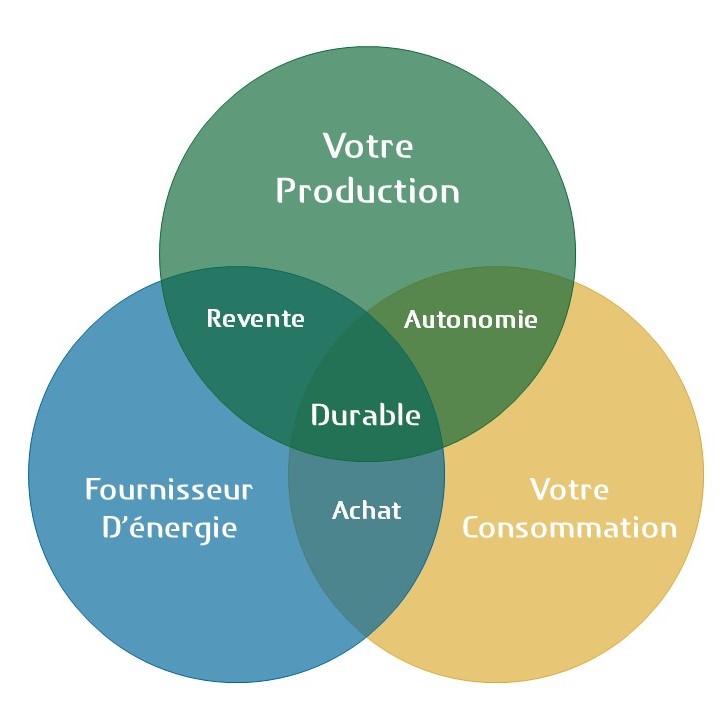 Vous revendez à votre fournisseur d’énergie la production qui n’est pas utilisée et vous n’achetez qu’au besoin.
